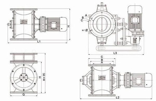 | 型號 | A | B | C | H | Q | L1 (內(nèi)) | L2 (外) | L3 (鏈) | n-Ф | 工作溫度 ℃ | 轉(zhuǎn)速 轉(zhuǎn)/分 | 電機功率KW |